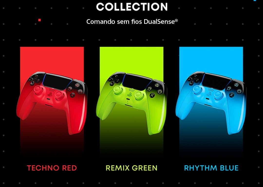 A Sony Interactive Entertainment Portugal (SIEP) anuncia que o comando sem fios DualSense já está disponível em três novas cores (Remix Green, Rhythm Blue e Techno Red), tanto nos pontos de venda habituais, como na PlayStation Direct, por um PVP recomendado de 84,99€.