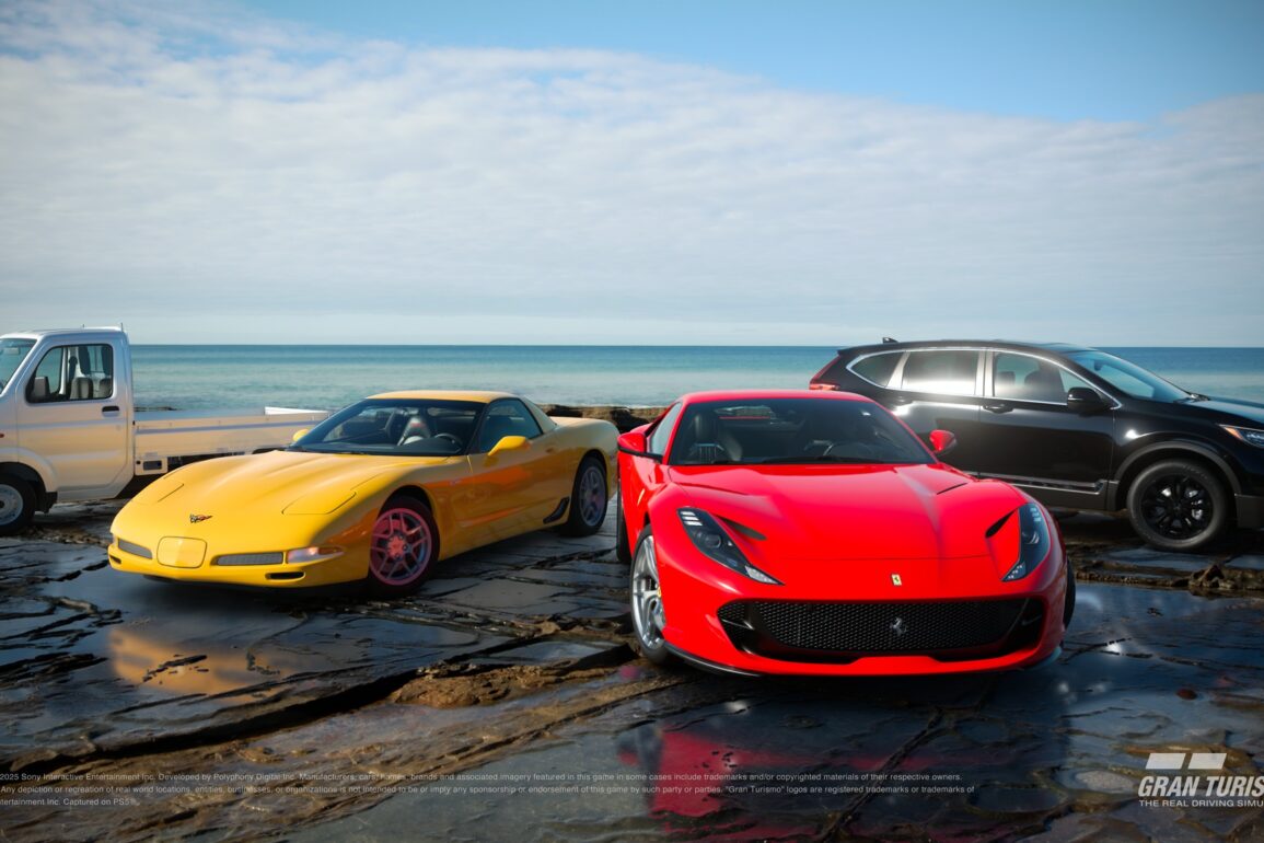Esta nova atualização traz quatro novos veículos, incluindo supercarros icónicos da Ferrari e da Chevrolet, novos eventos nos Circuitos Mundiais, melhorias na IA Gran Turismo Sophy e ainda novidades no modo Scapes.