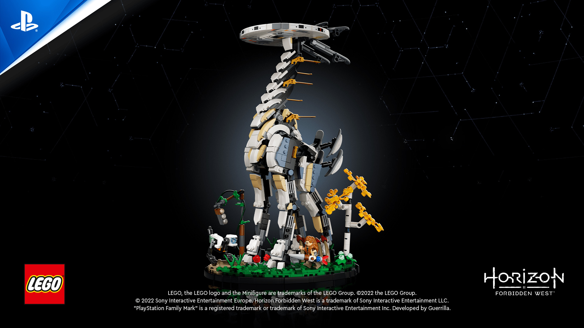 O novo visual arrojado da máquina mais alta do mundo de Horizon, destinado a tornar-se ainda mais icónico, construído com peças LEGO, estará disponível a partir de maio de 2022 e é uma peça fundamental para os fãs da aventura de Aloy.