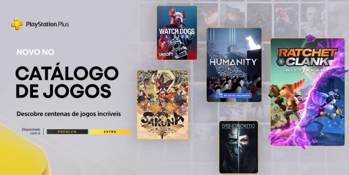 Ratchet & Clank: Uma Dimensão À Parte, Humanity e Watch Dogs : Legion são algumas das novidades do catálogo de jogos que estarão disponíveis a partir de 16 de maio para os membros do PlayStation Plus Premium e ExtraPursuit Force e Ghostbusters: The Video Game Remastered destacam-se entre as novidades do catálogo de clássicos que estarão disponíveis a partir do mesmo dia para os membros do PlayStation Plus Premium.