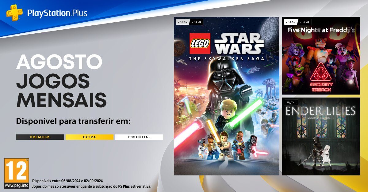 LEGO Star Wars: The Skywalker Saga, Five Nights at Freddy’s: Security Breach e ENDER LILIES: Quietus of the Knights chegarão agora em agosto sem custos adicionais para todos os níveis de subscrição do PlayStation Plus.