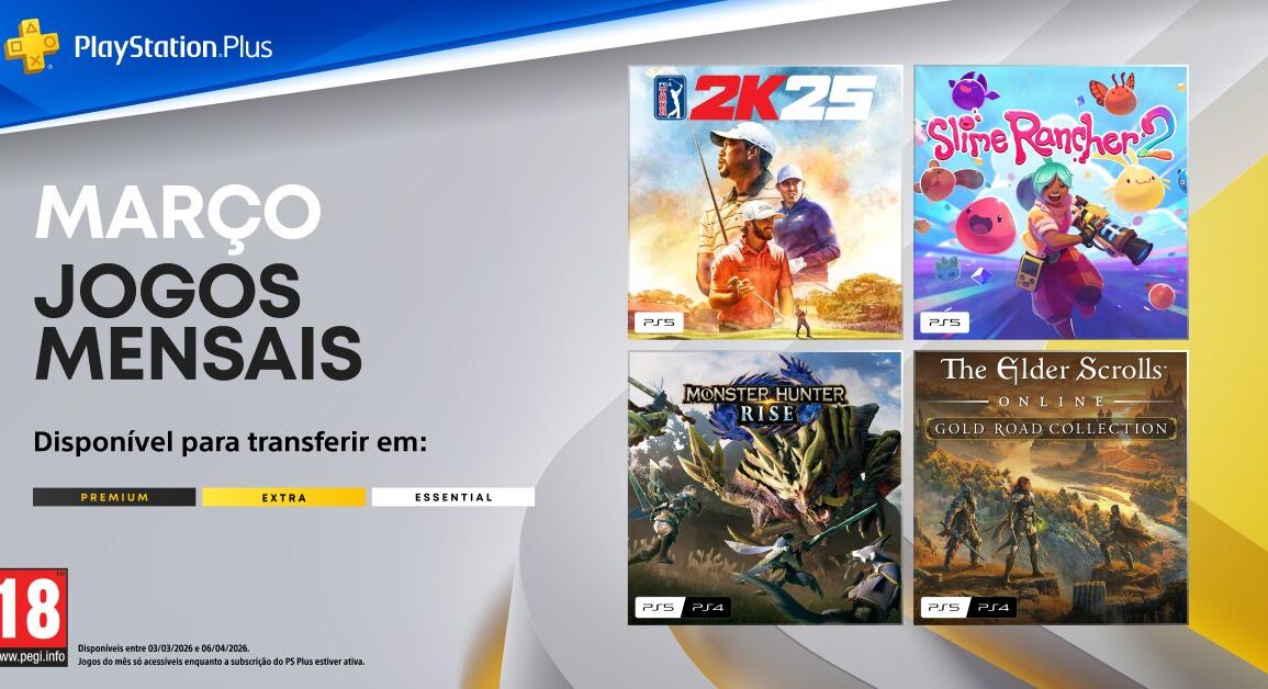 A Sony Interactive Entertainment (SIE) anunciou quais são os títulos que chegarão em março sem custos adicionais para todos os níveis de subscrição do PlayStation®Plus: PGA Tour 2K25, Slime Rancher 2, Monster Hunter Rise e The Elder Scrolls Online Collection: Gold Road. Títulos estarão disponíveis para download na PlayStation®Store a partir da próxima terça-feira, dia 03 de março, e até 06 de abril.