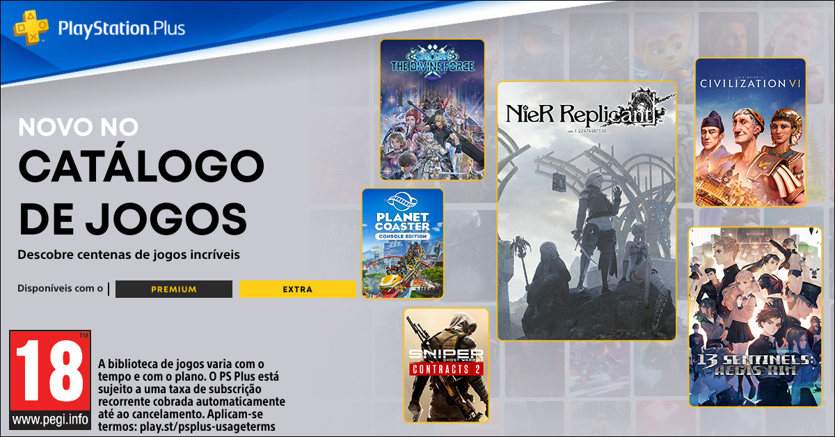 NieR Replicant ver.1.22474487139…, 13 Sentinels: Aegis Rim e Sid Meier’s Civilization VI são algumas das novidades do catálogo de jogos que estarão disponíveis a partir de 19 de setembro para os membros do PlayStation Plus Premium e Extra