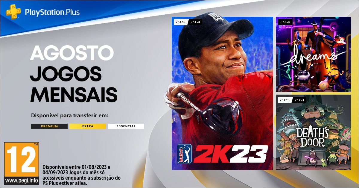 A Sony anunciou, através do Blog Oficial da PlayStation , quais são os títulos que chegarão em agosto sem custos adicionais para todos os níveis de subscrição do PlayStation Plus: PGA TOUR 2K23, Dreams e Death’s Door. Títulos estarão disponíveis para download na PlayStation Store a partir do próximo dia 01 de agosto e até ao dia 04 de setembro de 2023.