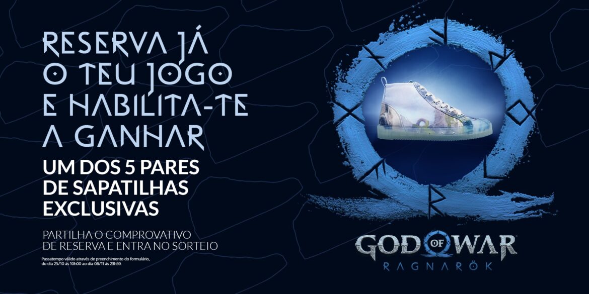 Os jogadores que reservarem o jogo, tanto na PlayStation Store, como nos pontos de venda habituais, poderão habilitar-se a ganhar um par destes ténis de edição exclusiva, ao participarem num passatempo, que está atualmente a decorrer nos canais oficiais da PlayStationPortugal no YouTube, Twitter, Instagram e Facebook até ao próximo dia 8 de novembro. Para participarem, basta preencher um formulário, com a inserção de um comprovativo de reserva e a criação de uma frase que una as palavras PlayStation, Sanjo e God of War.