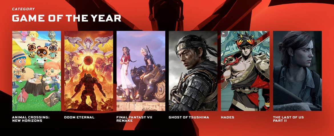 Para além dos mencionados candidatos a Game of the Year, Animal Crossing: New Horizons, DOOM Eternal, Final Fantasy VII: Remake e Hades estão também na corrida para ganhar o derradeiro prémio do ano, na indústria dos vídeo-jogos.