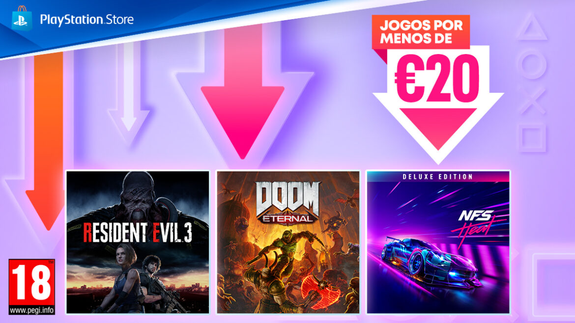 A Sony Interactive Entertainment lançou mais uma campanha na Playstation Store com promoção de jogos a preços inferiores a 20€. Os maiores destaques vão para Resident Evil 3, Need for Speed Heat: Deluxe Edition e Doom Eternal.