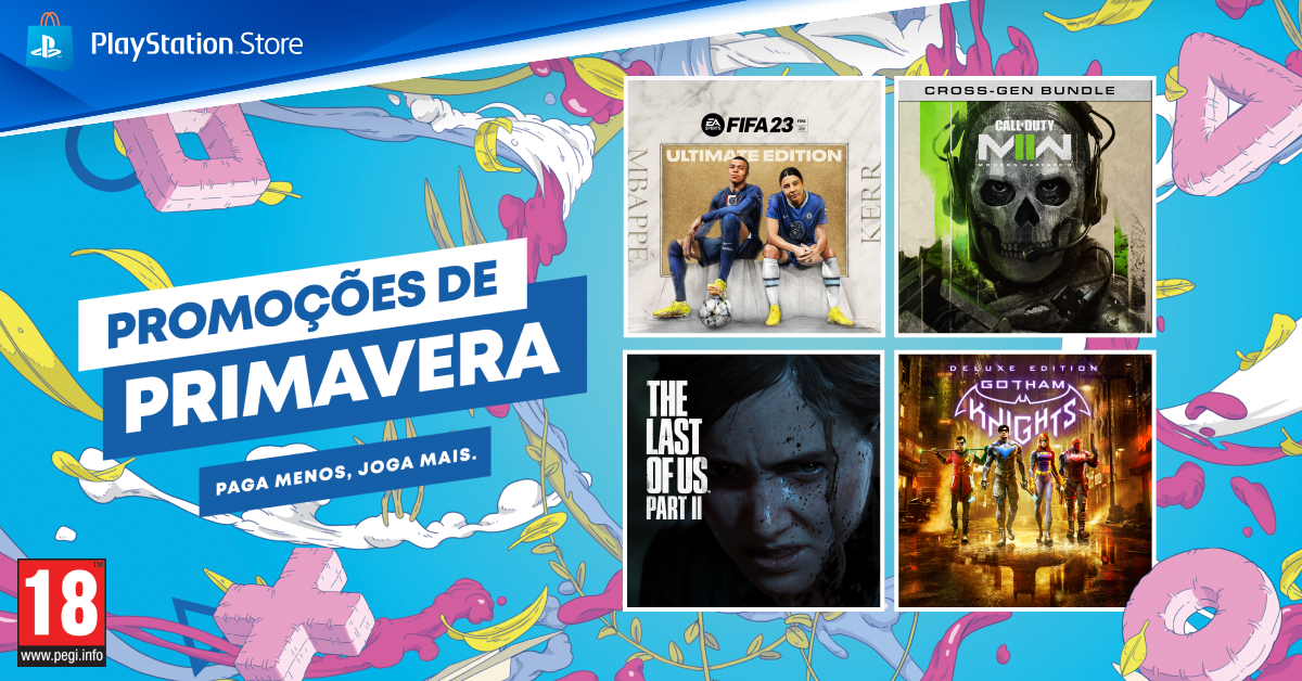 Arrancou hoje a segunda vaga das Promoções de Primavera da PlayStation Store, que descontos em grandes títulos para a PlayStation 5 e para a PlayStation 4, como FIFA 23, Call of Duty : Modern Warfare II, The Last of Us Parte II e Gotham Knights. Campanha prolonga-se até ao próximo dia 26 de abril.